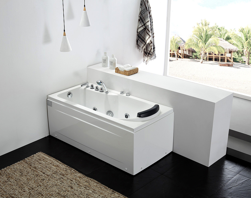 - Материал: акрил. Материал отличается прочностью и имеет гладкую поверхность без пор, что препятствует размножению бактерий и облегчает уход за ванной.