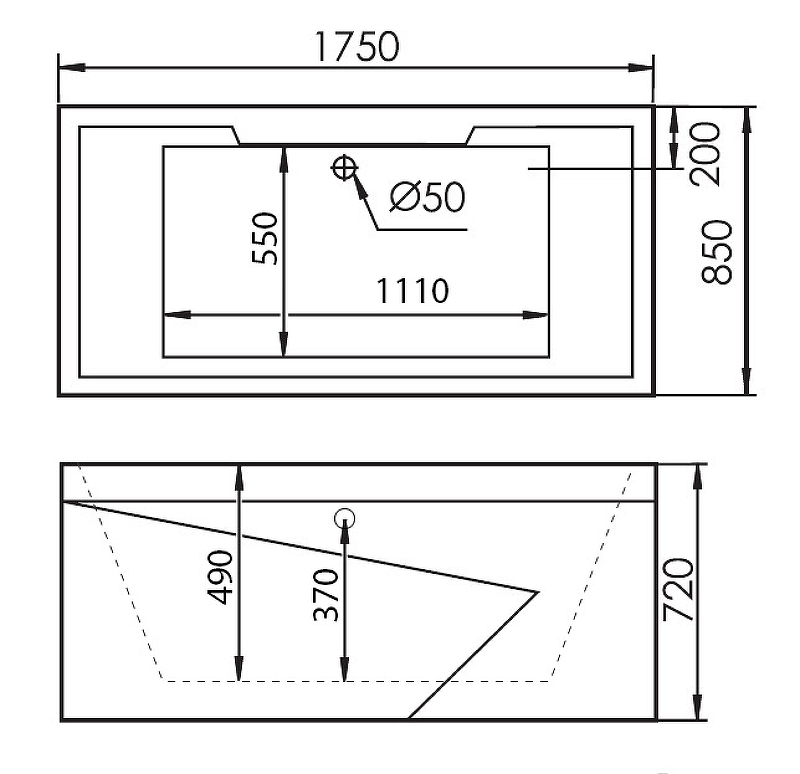 - Размер ванны (ДхШхВ): 175х85х72 см.