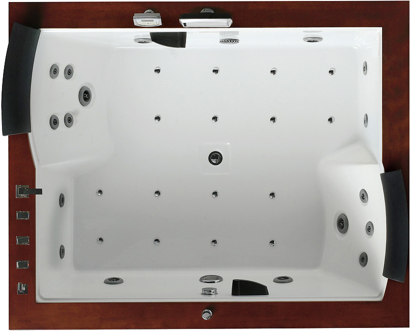 - Материал: акрил. Материал отличается прочностью и имеет гладкую поверхность без пор, что препятствует размножению бактерий и облегчает уход за ванной.
