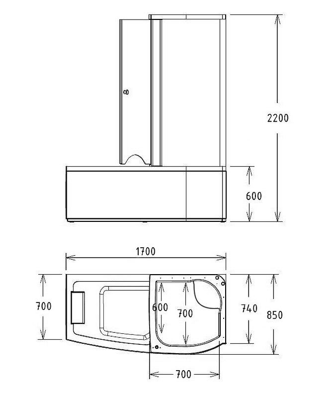 Акриловая ванна с душевой кабиной Gemy 170x85 G8040 C R.