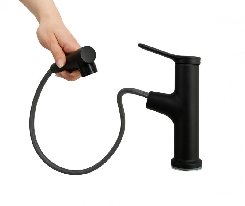 Смеситель для раковины BelBagno BB-LVMD-NERO-W0 с выдвижным изливом и тремя типами струи: