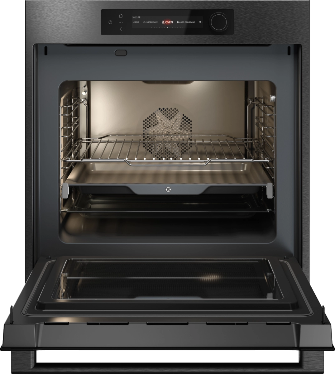 ASKO OCM66 — многофункциональный духовой шкаф с функцией СВЧ, созданный для тех, кто ценит точность и удобство. Вместительный объем 71 л позволяет готовить на нескольких уровнях, а система 360° Air Flow равномерно распределяет жар, чтобы пироги поднимались без «сырых» зон, мясо прожаривалось по всему объему, а овощи сохраняли текстуру. Центральным элементом управления выступает 6-дюймовый TFT‑дисплей с понятным интерфейсом: сенсорные зоны и поворотный регулятор помогают быстро выбирать режимы, сохранять рецепты и корректировать настройки прямо во время готовки.
