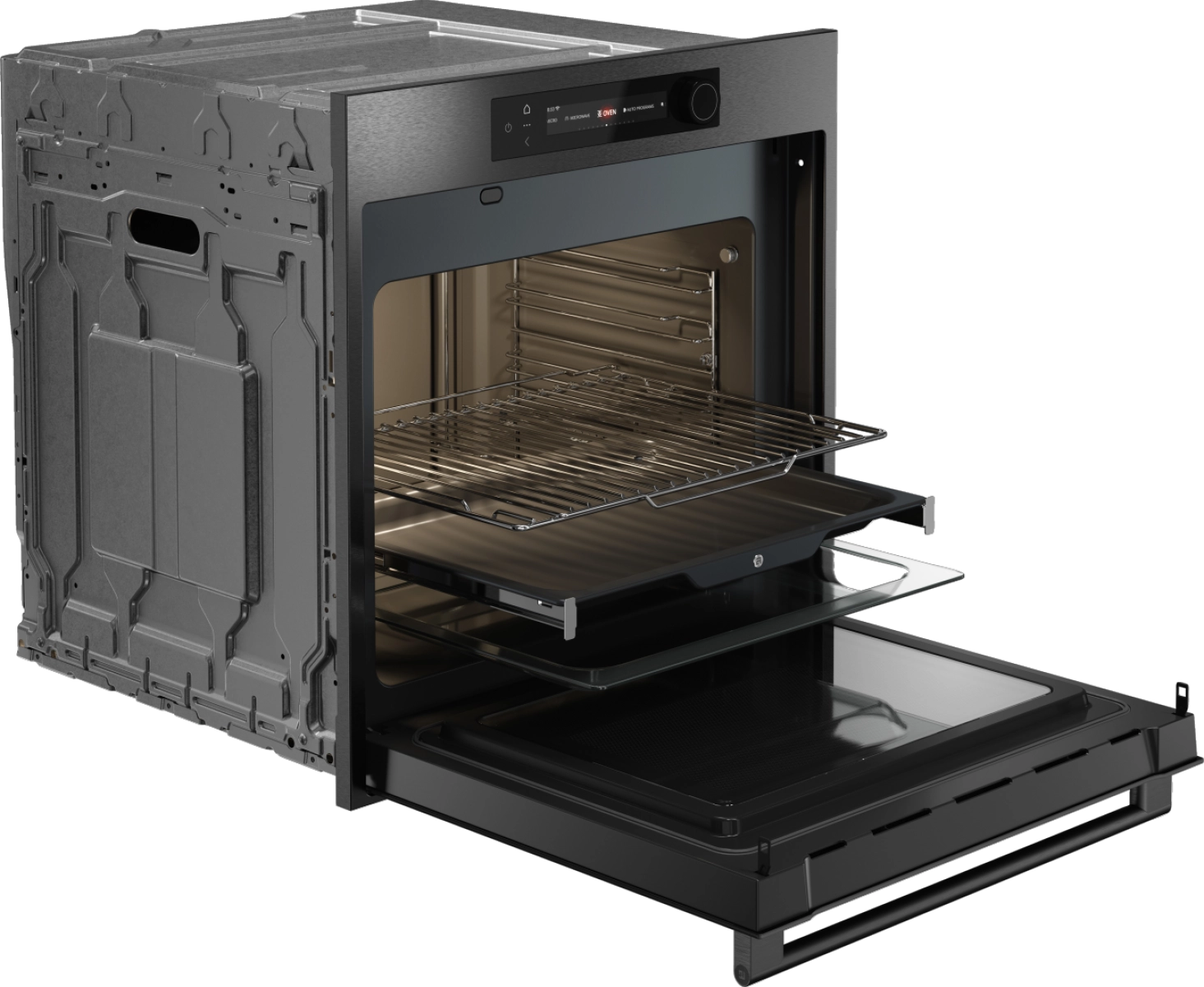 LED‑подсветка с регулировкой яркости и цветовой температуры обеспечивает отличную видимость на любой полке. Тройное остекление и плавное закрывание двери повышают безопасность и комфорт, а пиролитическая эмаль снижает трудоемкость ухода — достаточно протереть камеру после цикла высокотемпературного выжигания загрязнений. Частично выдвижные телескопические направляющие упрощают работу с тяжелыми формами и противнями.