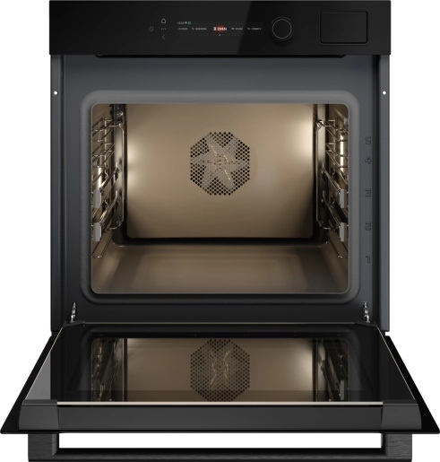 Управление удобно реализовано через 6" TFT-дисплей с сенсорными кнопками и поворотным регулятором — интуитивно и наглядно. Дверца с мягким закрыванием SoftClose и четырёхслойное остекление повышают безопасность и сохраняют тепло, а внутренняя поверхность покрыта стойкой к загрязнениям эмалью для лёгкого ухода. Для глубокой очистки предусмотрена функция паровой очистки Aqua. В комплект включены два универсальных противня, перфорированный и неперфорированный противни из нержавеющей стали, решётка и термозонд для точного контроля внутренней температуры блюд.
