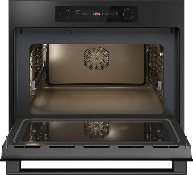 Сердцем этого духового шкафа является интуитивно понятное управление. Он оснащен ярким 6-дюймовым TFT-дисплеем с отзывчивыми сенсорными кнопками, дополненными точным поворотным переключателем. Эта комбинация обеспечивает максимально комфортное и быстрое взаимодействие с устройством, позволяя легко выбирать нужные программы и настройки.