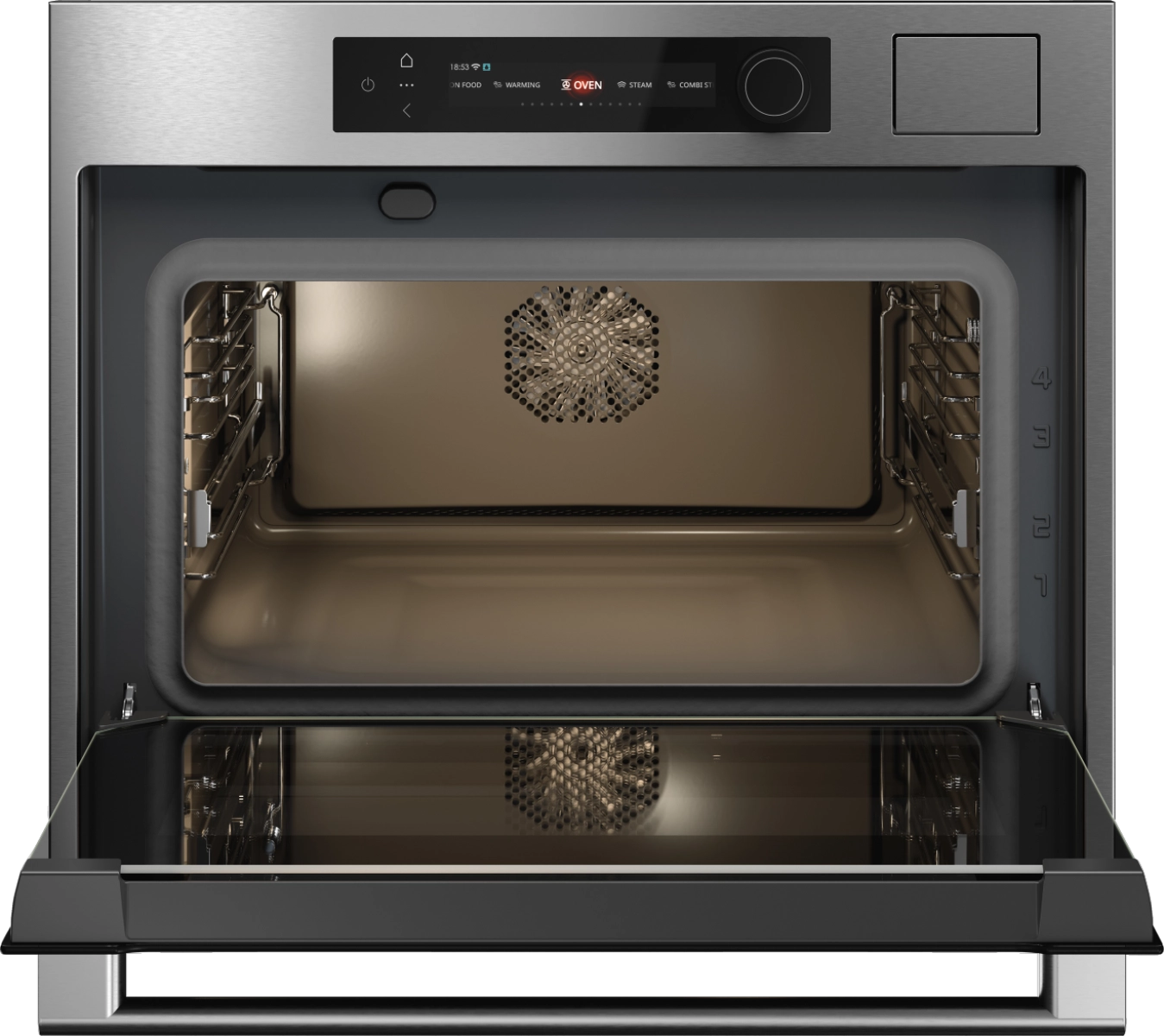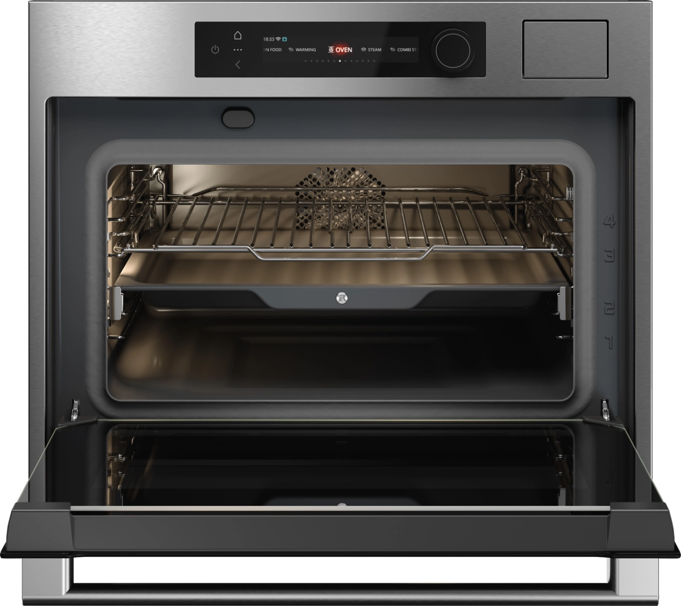 При объеме 51 литр и классе A++ духовой шкаф экономичен и эффективен. Технология Celsius Cooking™ с точностью до 1°С позволяет готовить идеально. Выбирайте из 15 режимов нагрева и 6 программ на пару, включая AirFry, сушку, стерилизацию и эксклюзивный OshiBori. Управление интуитивно понятно благодаря цветному TFT-дисплею и сенсорным элементам.