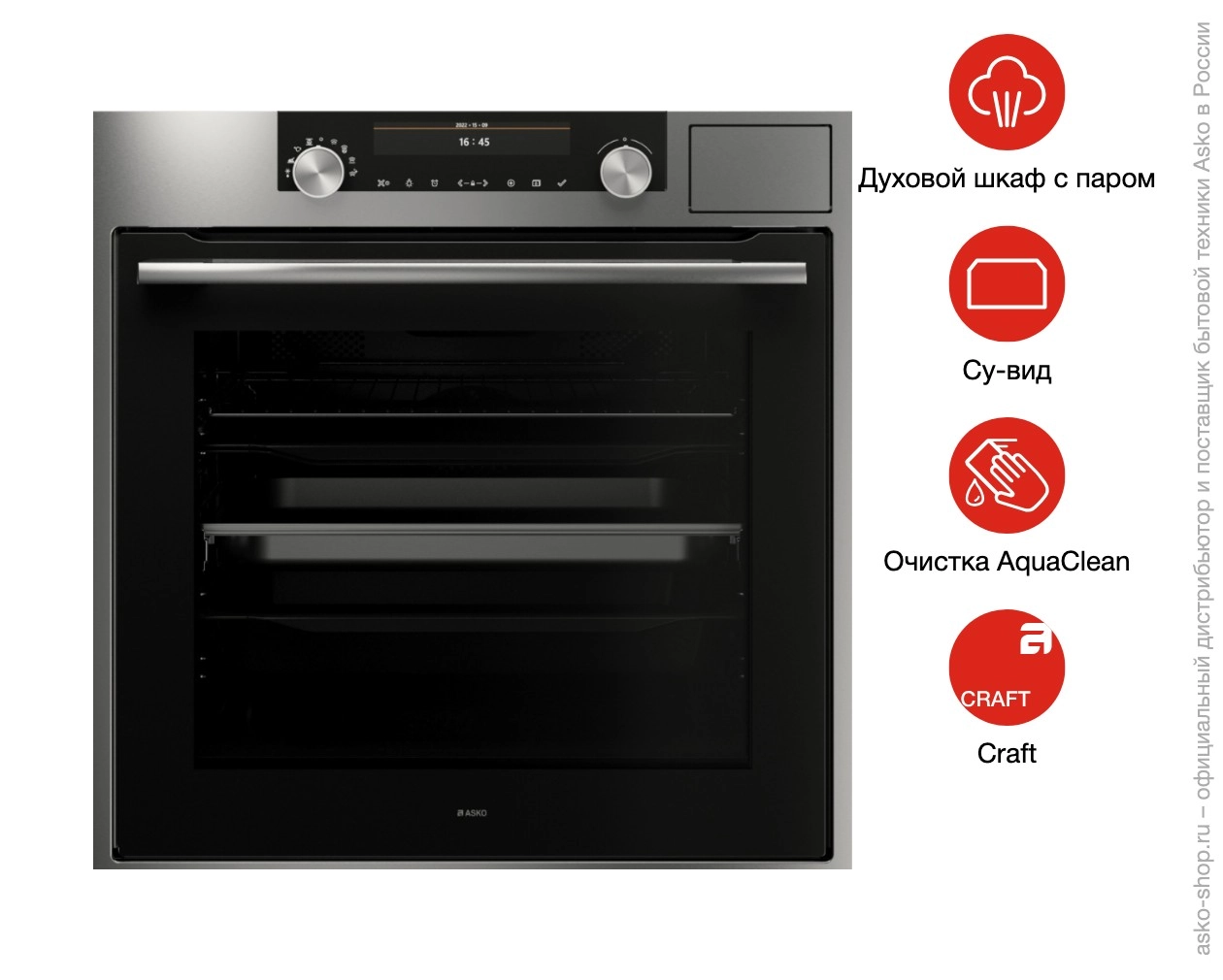 Многофункциональный духовой шкаф ASKO NYACRAFT Series 6 сочетает передовые технологии и продуманный эргономичный дизайн. Камера объемом 71 л и точный контроль температуры с погрешностью ±1°C обеспечивают стабильный результат на всех уровнях; 360° Air Flow равномерно распределяет горячий воздух, а режим AirFry позволяет добиться хрустящей корочки с минимальным количеством масла. Шесть паровых программ, включая Geyser Steam и режим су‑вид, расширяют кулинарные возможности: готовьте на пару, сочные запеканки и деликатные блюда низкотемпературного приготовления.