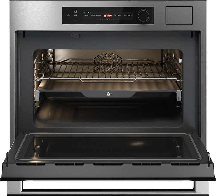 Духовой шкаф ASKO OCSM64SSH (серия NYACRAFT Series 6) — кулинарный центр 5-в-1 из нержавеющей стали. Этот компактный прибор (45 см) объемом 51 литр объединяет функции духовки, пароварки, микроволновой печи, AirFry и су-вид, открывая бескрайние возможности для кулинарного творчества.