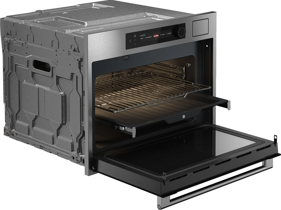 OCSM64SSH предлагает 11 режимов, включая AirFry для хрустящей текстуры без лишнего жира, и технологию Geyser Steam с шестью режимами для нежных блюд на пару или су-вид. Функция снижения влажности создает идеальную золотистую корочку. Пять комбинированных режимов с микроволнами (мощность до 1000 Вт) значительно ускоряют процесс готовки и разогрева.