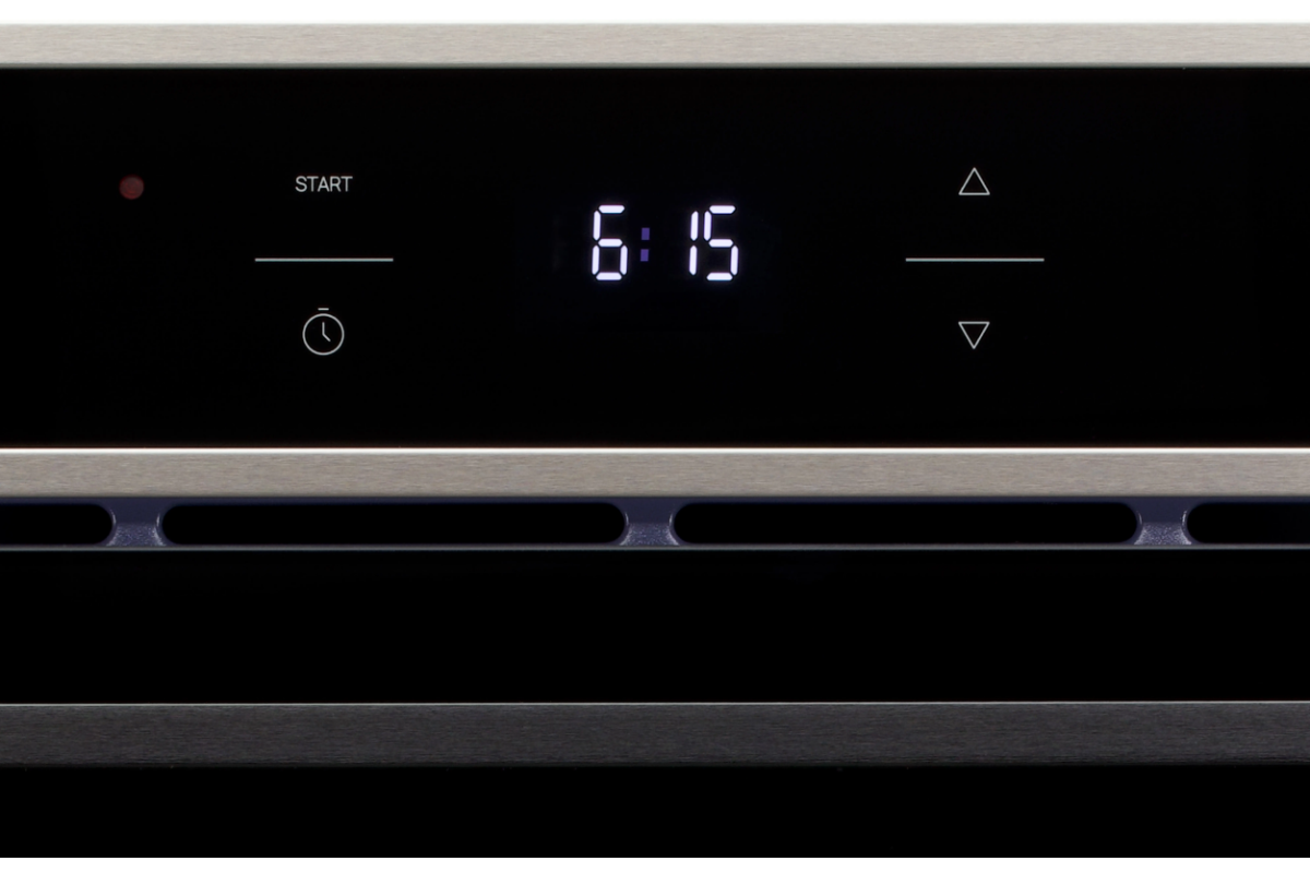 Антипригарная эмаль ColdPyro, сенсорное управление, утапливаемые регуляторы, 9 режимов работы, телескопические направляющие, плавное закрывание, термощуп, дизайн - чёрное стекло с нержавеющей сталью, таймер с отложенным стартом