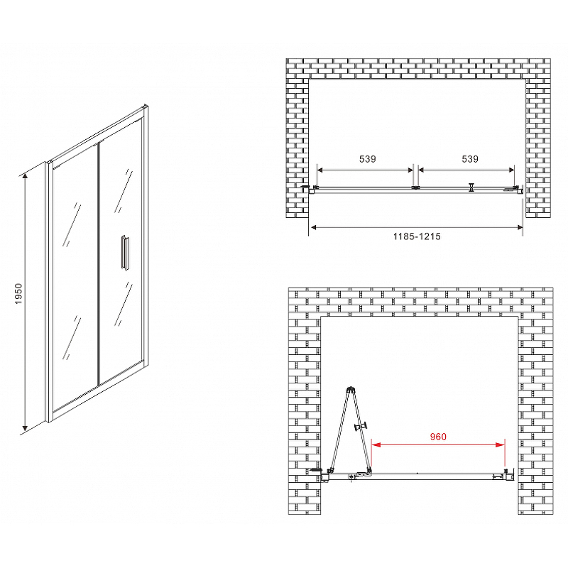 - Ширина входа: 960 мм.