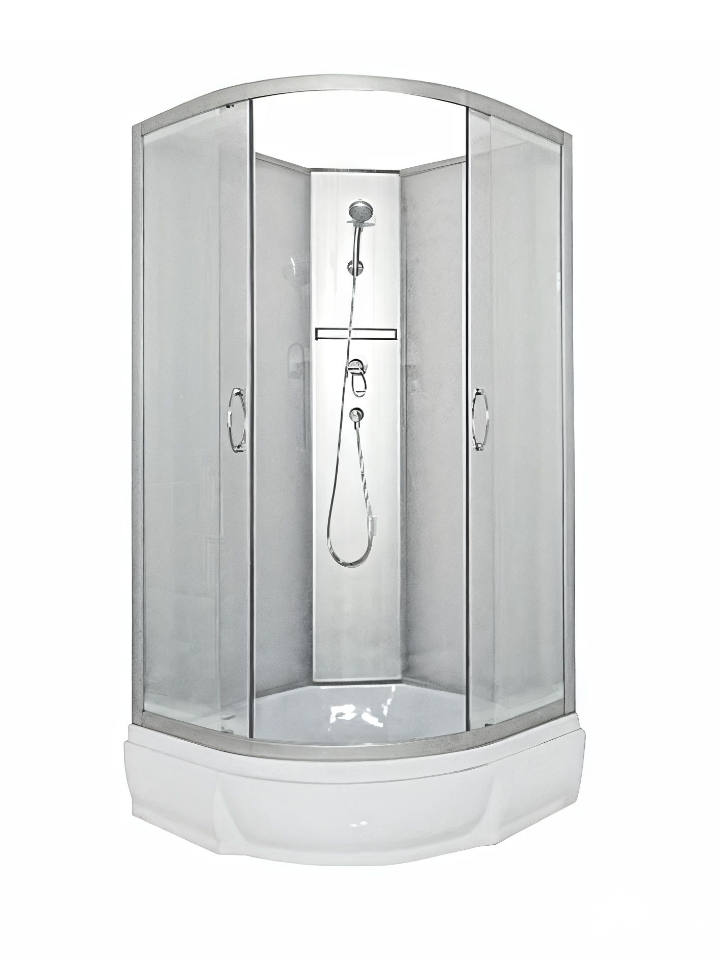 Душевая кабина River Nara 100x100 МТ 10000001355 превосходно сочетается в интерьере любой стилистической направленности за счет изысканных форм и плавных линий. Полотно двери выполнено из закаленного стекла толщиной 6 мм. Кабина оснащена стеклянной полочкой и ручным душем