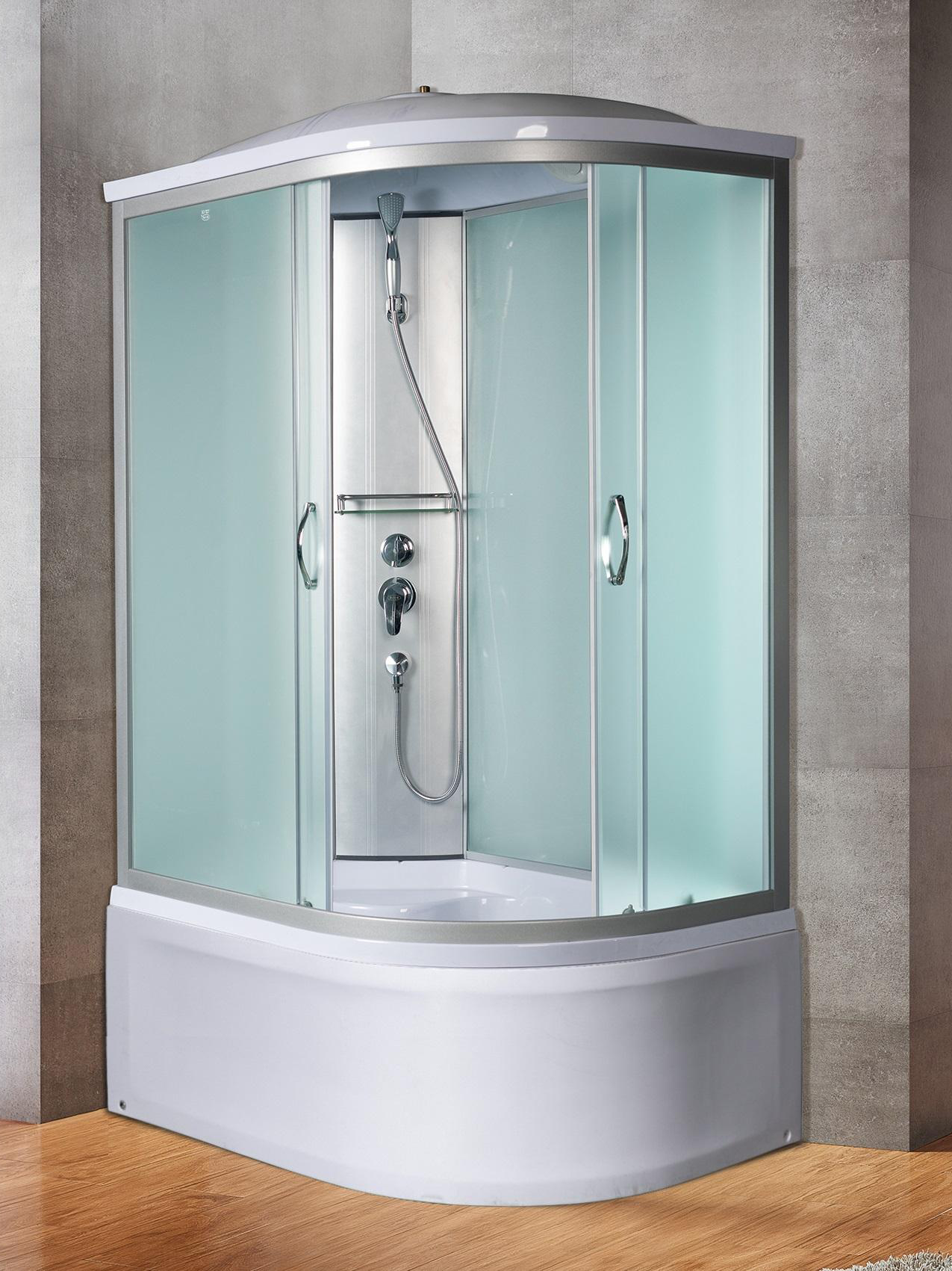 Душевая кабина River Nara 120х90х46 МТ L 10000003644 превосходно сочетается в интерьере любой стилистической направленности за счет изысканных форм и плавных линий. Полотно двери выполнено из закаленного стекла толщиной 4 мм. Кабина оснащена стеклянной полочкой и ручным душем