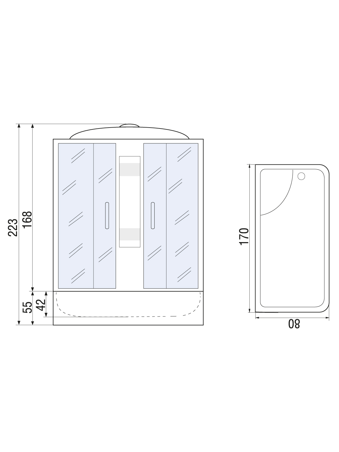 - Размер (ШxВxД): 170 x 223 x 80 см.