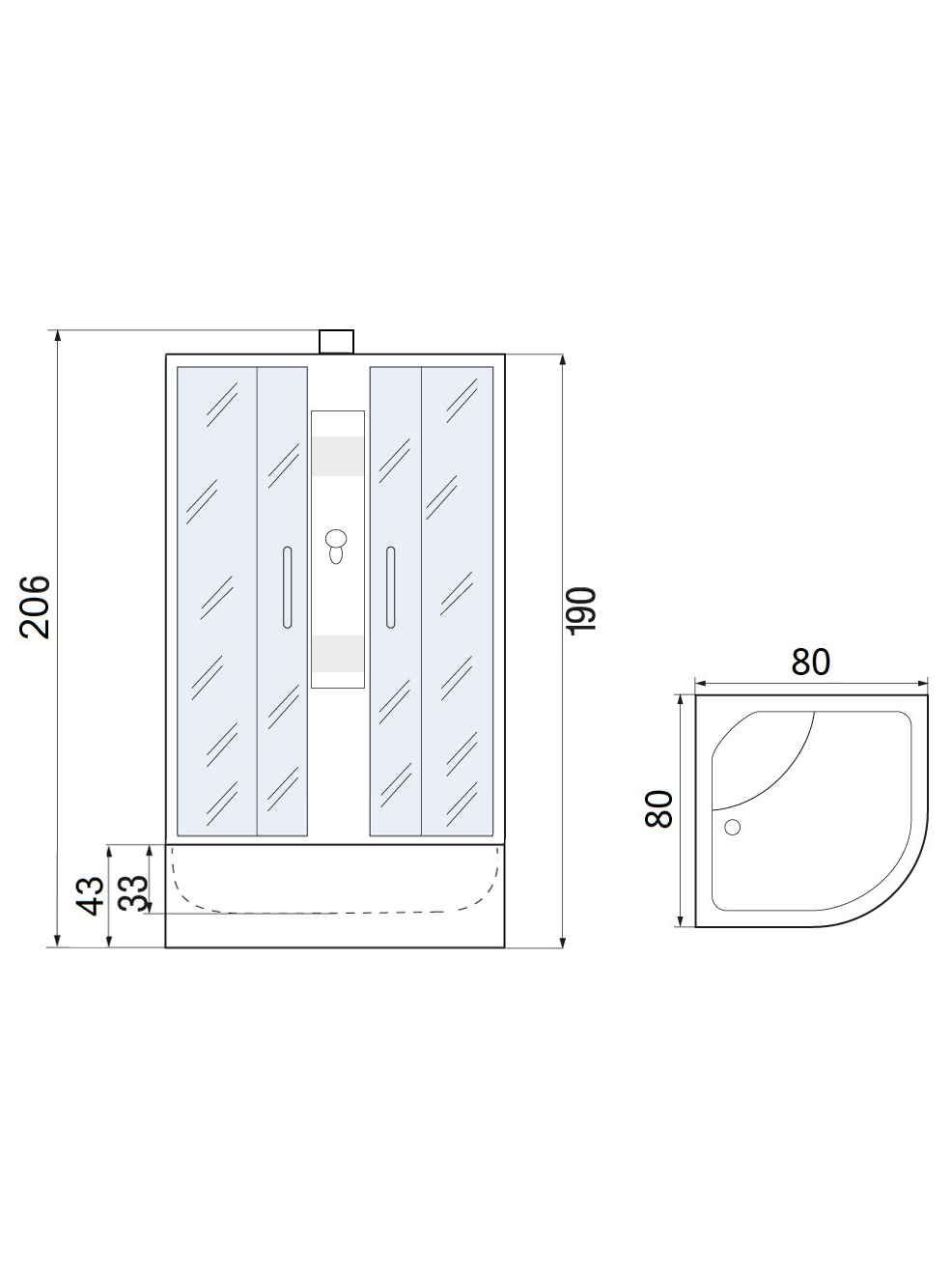- Размер (ШxВxД): 80 x 206 x 80 см.