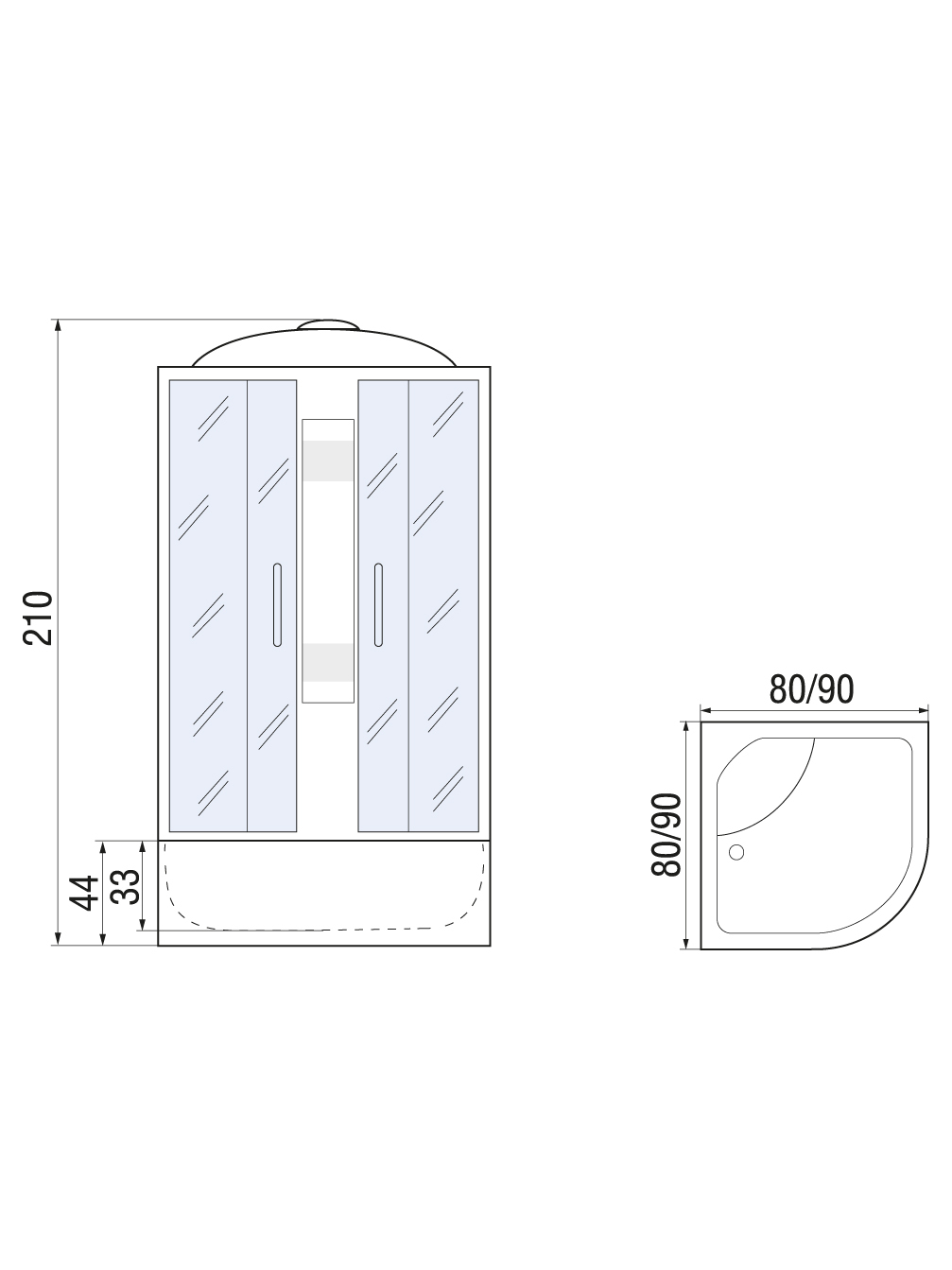 - Высота поддона - 44 см