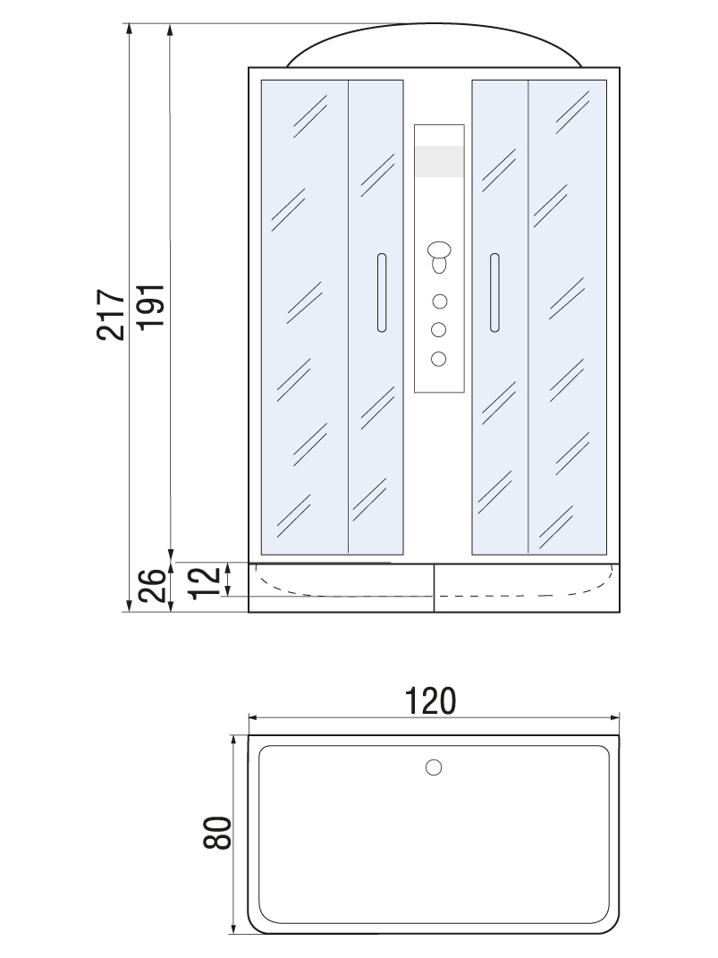 Душевая кабина River Sena 120/80/24 МТ 120x80, стекло матовое, профиль хром матовый