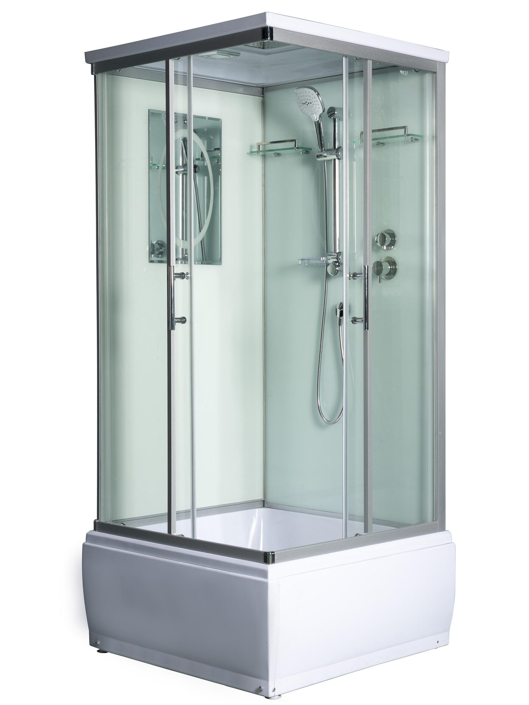 Стеклянная душевая кабина WeltWasser WW500 Aller 902 90x90 квадратная, с крышей, с двумя раздвижными дверьми. Бессиликоновая сборка.