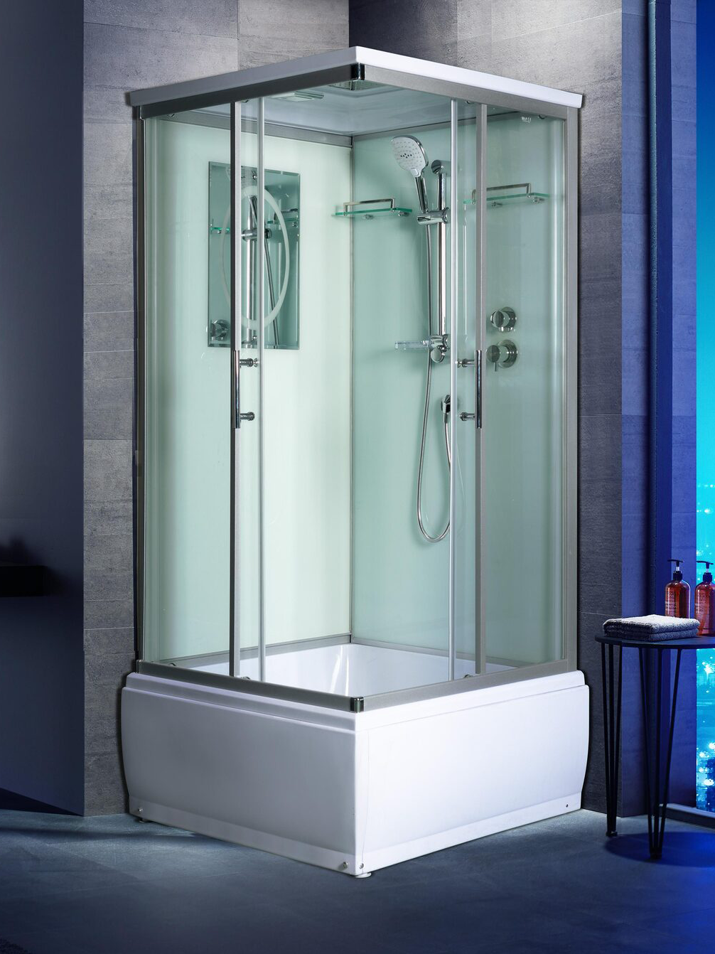 - Размеры (ШхДхВ): 90х90х217 см. Ширина входа: 51 см.