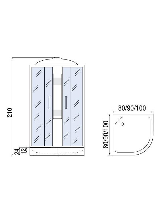 - Габариты (ШхДхВ): 900х900х2100 мм.