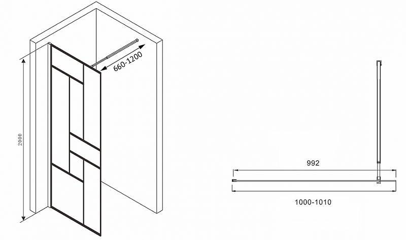 - Конструкция: неподвижное стекло с профилем и кронштейном.