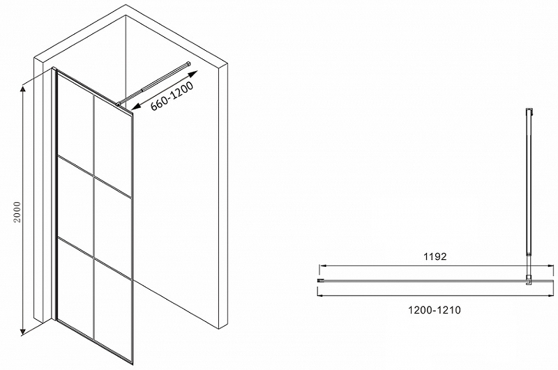 - Конструкция: неподвижное стекло с профилем и кронштейном.