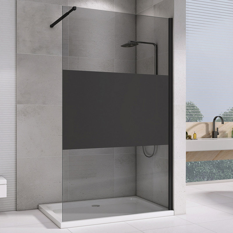 - Исполнение полотна перегородки: прозрачное с тонированной полосой закаленное стекло, толщиной 6 мм.