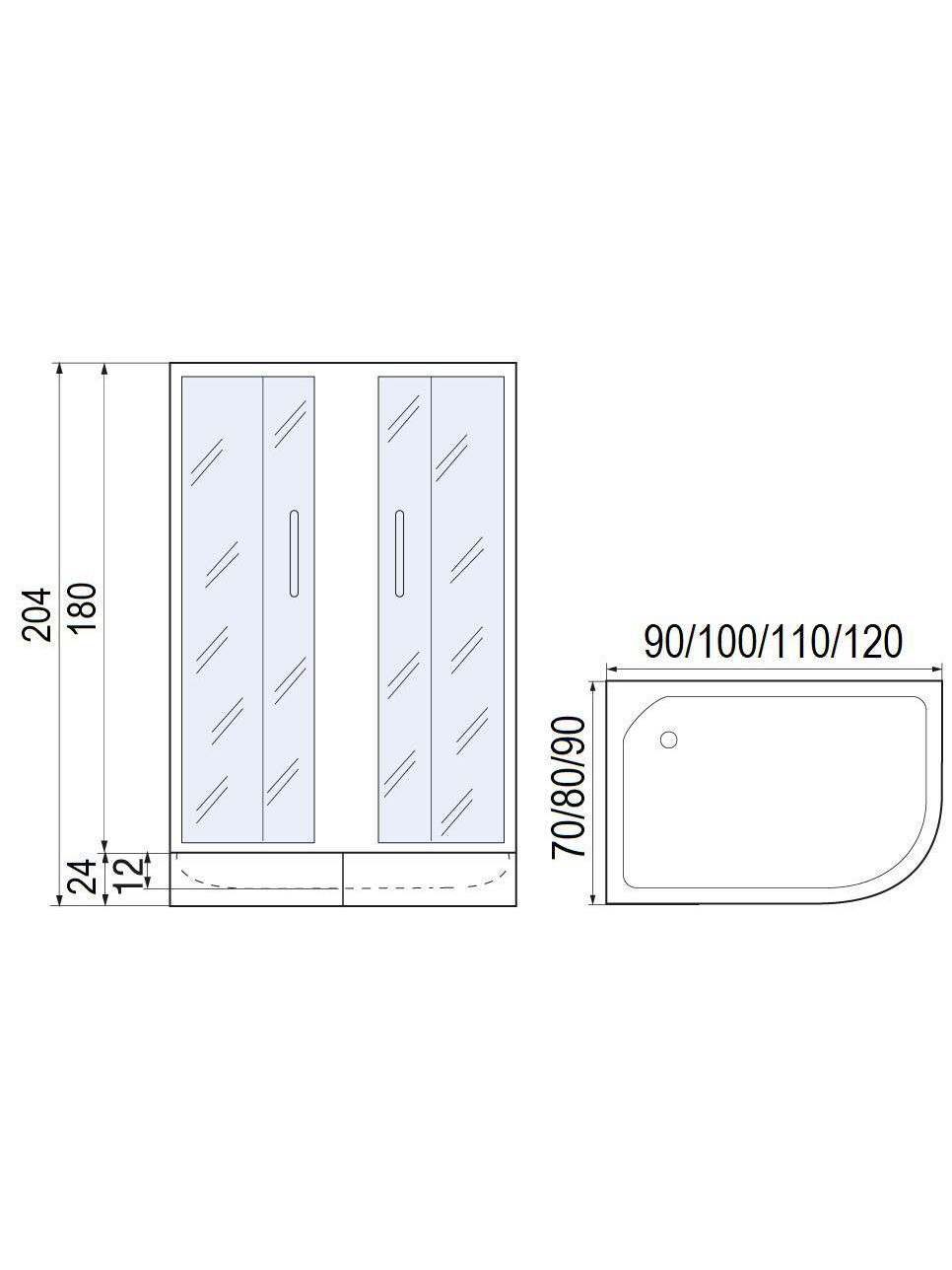 МОНОМАХ ДУ 100/70/180 МЗ L/R Душевое ограждение, 1000*700*1800, асимметричное