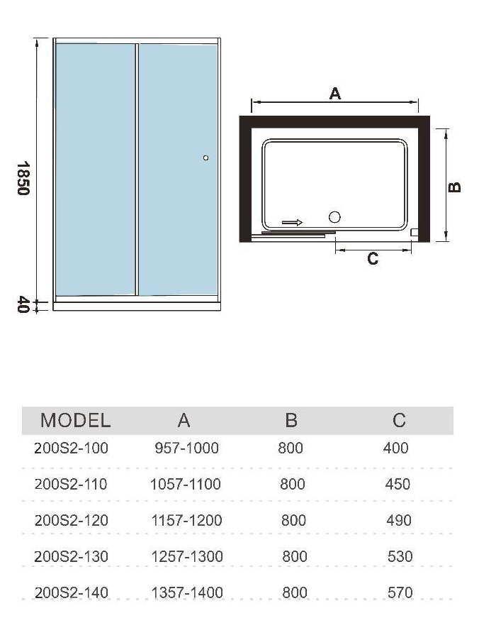 Стеклянная душевая дверь в нишу WeltWasser WW200 120 200S2-120 двухсекционная, с раздвижной створкой. Универсальная установка: слева или справа.