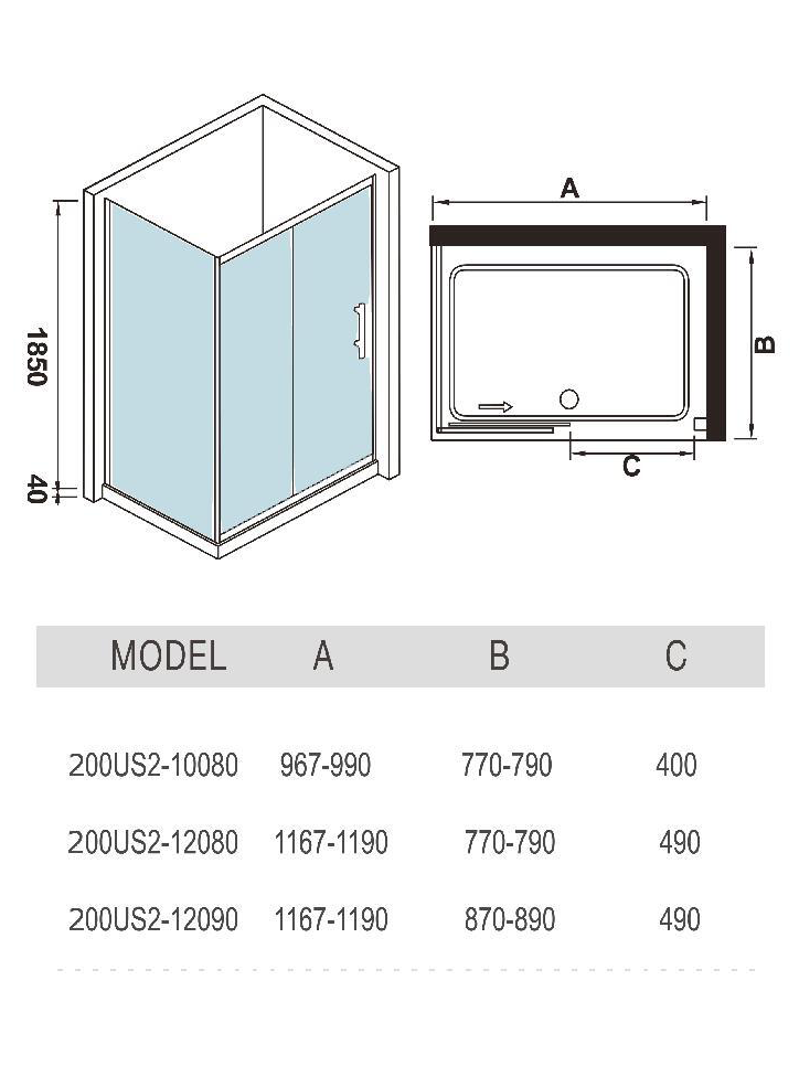 Стеклянный душевой уголок WeltWasser WW200 120x80 200US22-12080 прямоугольный, с одной раздвижной дверью.