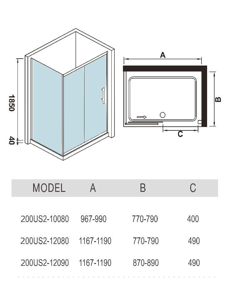 Стеклянный душевой уголок WeltWasser WW200 120x90 200US22-12090 прямоугольный, с одной раздвижной дверью.