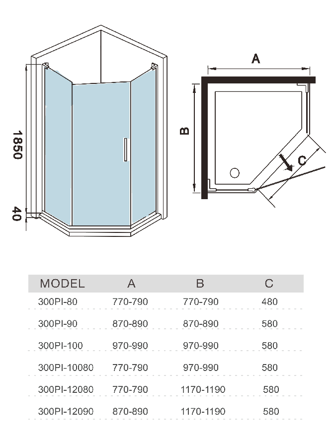 Стеклянный душевой уголок WeltWasser WW300 90x90 300PI-90 в форме призмы, с одной распашной дверью. Дверь может быть установлена как справа так и слева.