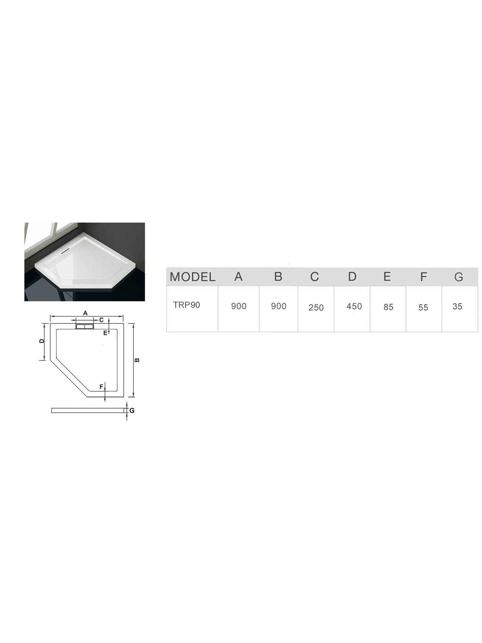 Душевой поддон из искусственного мрамора WeltWasser WW TR P 90x90 в форме призмы. Нагрузка до 500 кг.