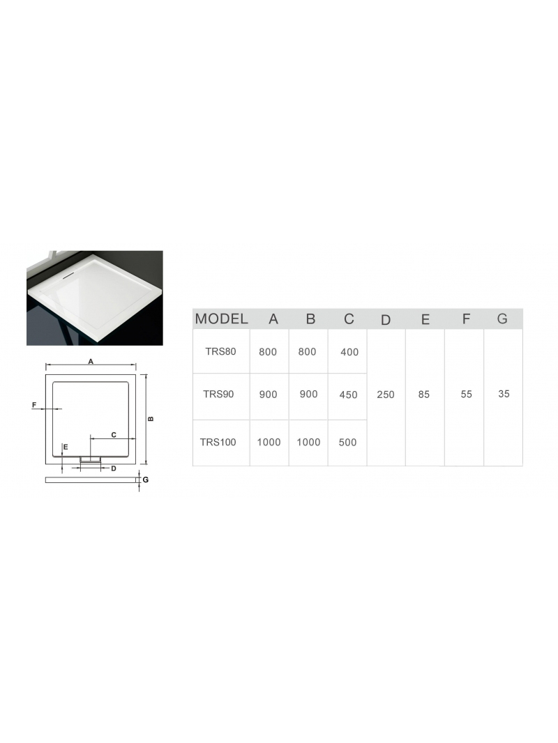 Квадратный душевой поддон из искусственного мрамора WeltWasser WW TR S 100x100 TRS100. Нагрузка до 500 кг.