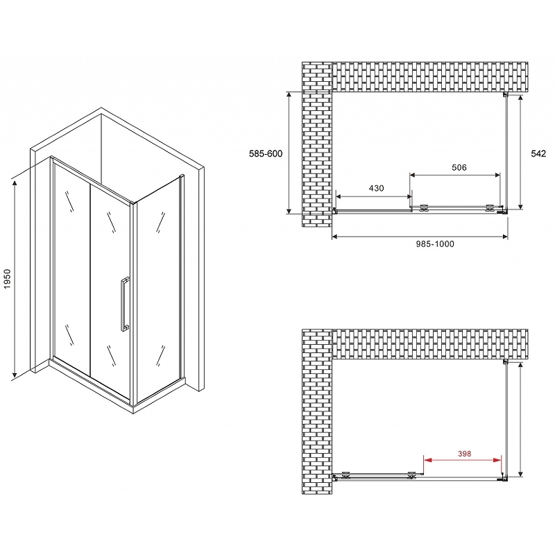 - Размеры (ШхВхД): 1000х1950х600 мм.