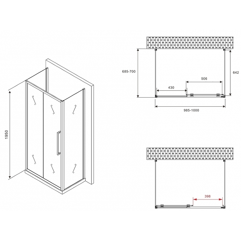 - Размеры (ШхВхД): 1000х1950х700 мм.