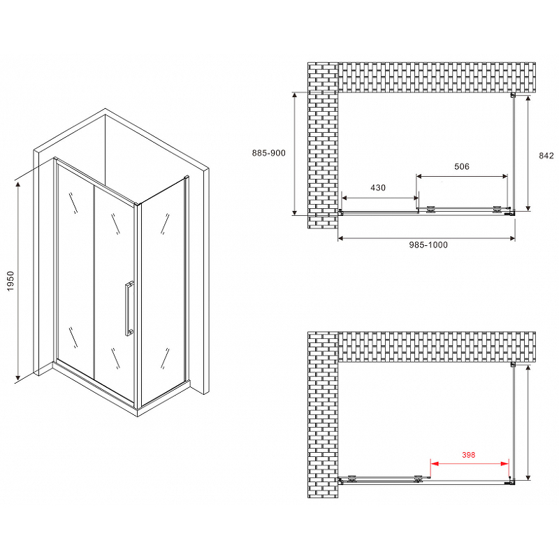 - Размеры (ШхВхД): 1000х1950х900 мм.
