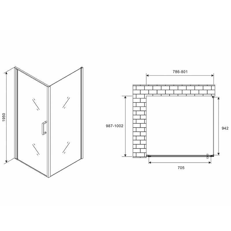 - Размеры (ШхВхД): 801х1950х1002 мм.