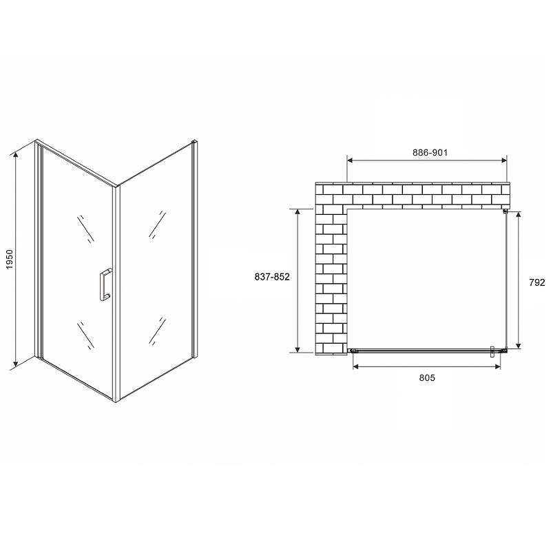 - Размеры (ШхВхД): 901х1950х852 мм.