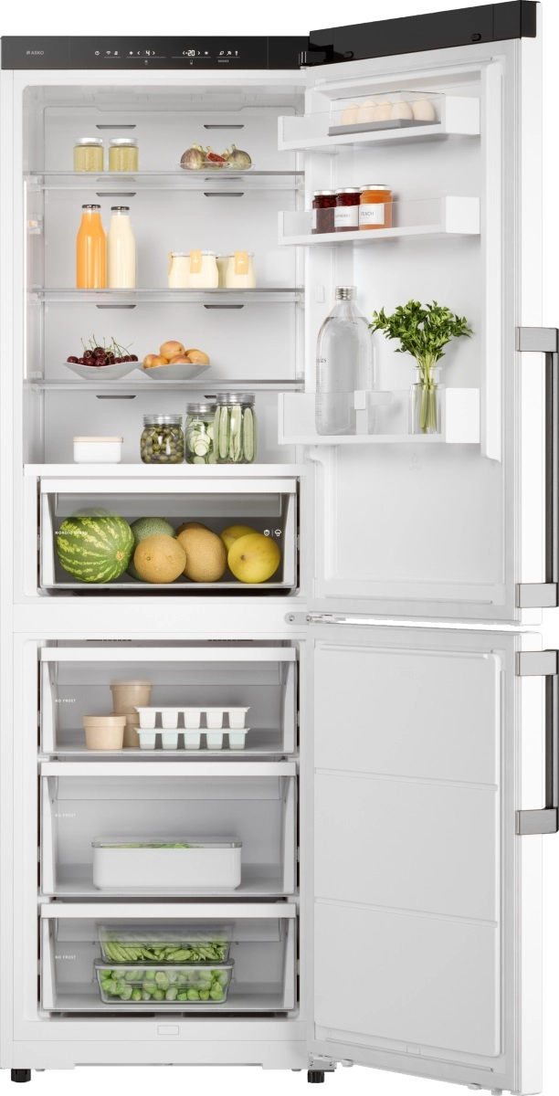 Asko RFC 286 KNBW 1 — вместительный комбинированный холодильник (330 л) с белым корпусом. Total NoFrost и Opti flow+ предотвращают наледь и обеспечивают равномерное охлаждение. Сенсорное управление, LED-подсветка, три дверных балкона и морозильник на 3 отсека делают хранение удобным и экономичным.
