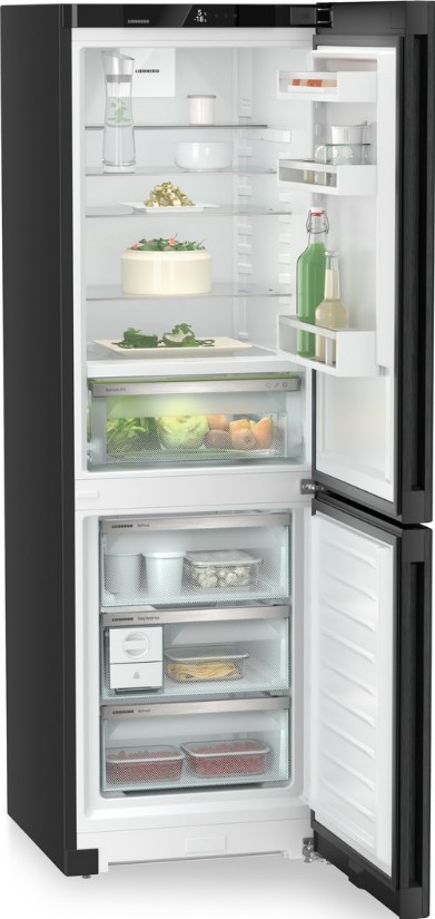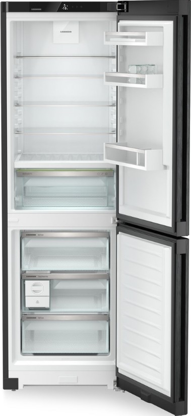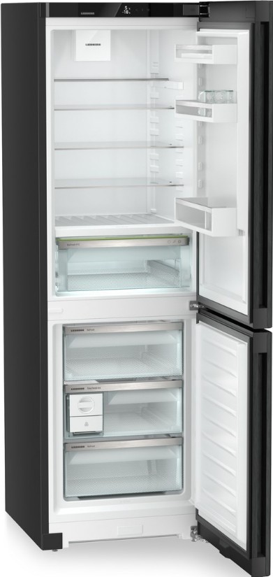 Морозильная камера расположена снизу и имеет объем 94 литра. Она оснащена системой охлаждения NoFrost, которая предотвращает образование инея и обледенения. Холодильник Liebherr CBNBDA 5223 оснащен множеством полезных функций, таких как режим EnergySaver, шаббат SabbathMode, отпуск HolidayMode, автоматический режим SuperCool и другие. Это делает его удобным и функциональным помощником на кухне.