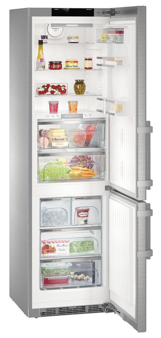 Отдельно стоящий двухкамерный холодильник Liebherr CBNes 4898 Premium BioFresh NoFrost оснащен электронным управлением и системой охлаждения NoFrost.