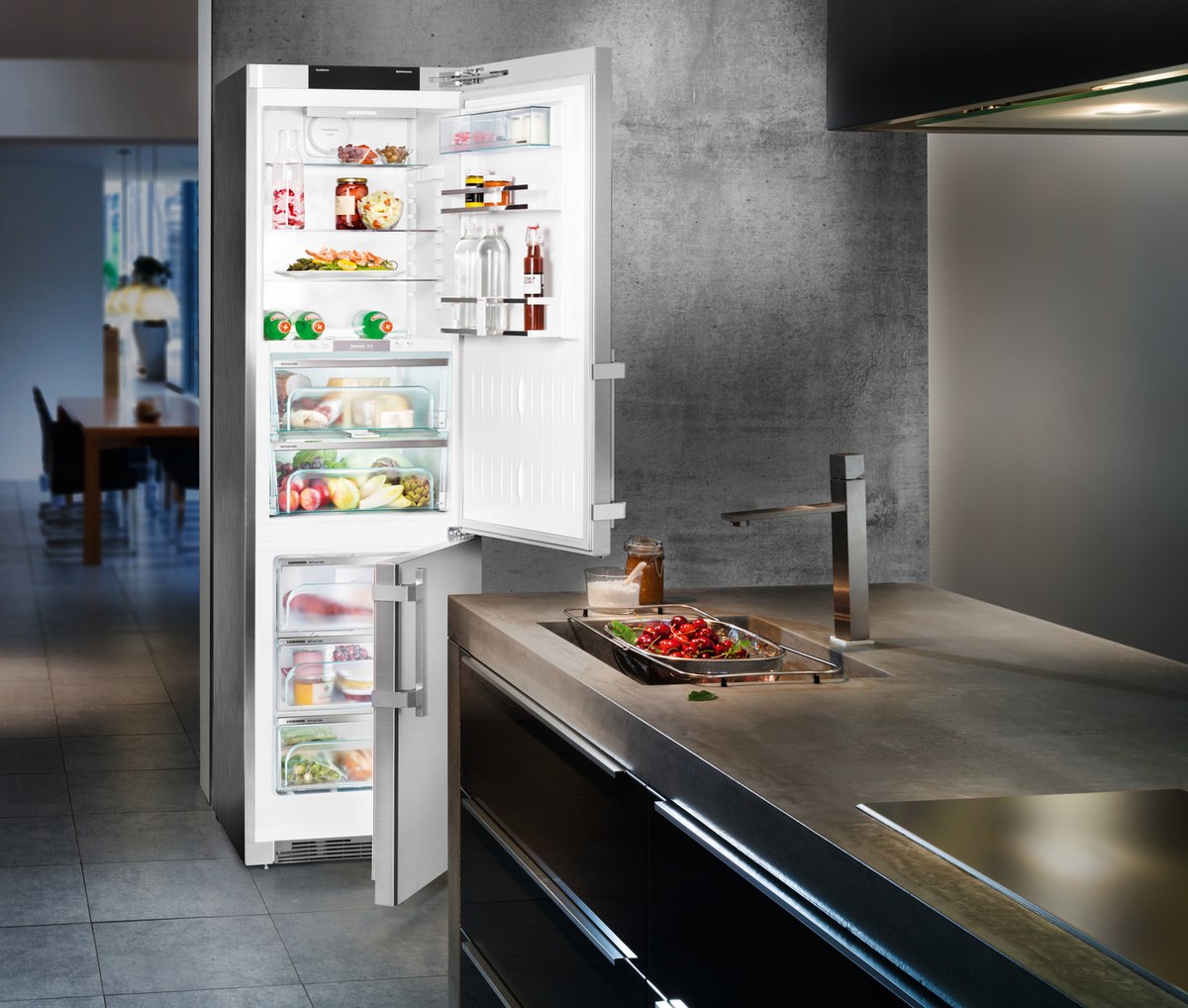 Холодильник Liebherr CBNies 4878 Premium BioFresh NoFrost — это практичное решение для современной кухни. Модель работает на базе системы DuoCooling с двумя контурами охлаждения, что исключает воздухообмен между изолированными камерами. Полезный объем холодильной камеры составляет 243 л. Эргономичное разделение тремя регулируемыми по высоте полками из закаленного стекла очень удобно для хранения любых, даже крупногабаритных продуктов. На дверце холодильника размещен 7-дюймовый сенсорный цветной TFT-дисплей, при помощи которого можно полностью контролировать его работу.