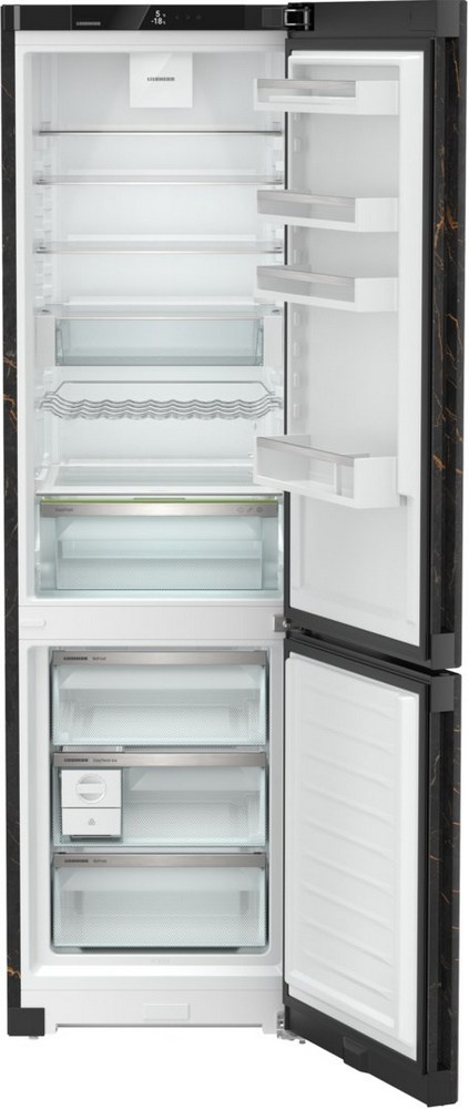 Liebherr CNbbd 5723 — современный прибор с особым дизайном в черном цвете. Устройство имеет два раздельных контура охлаждения DuoCooling, благодаря чему отсутствует воздухообмен между холодильным и морозильным отделениями. Сенсорное управление позволит без труда настроить необходимые параметры. Система No Frost избавит вас от необходимости размораживать вручную холодильник. Фильтр FreshAir с активированным углём будет поддерживать свежий воздух во внутреннем пространстве.