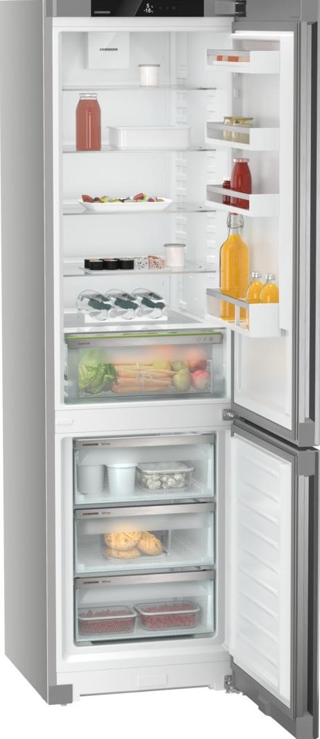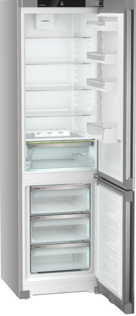Двухкамерный холодильник Liebherr CNsfd 5703 выполнен в стильном серебристом цвете. Благодаря строгому дизайну и относительно небольшим размерам он идеально впишется в практически любой интерьер кухни, и станет незаменимым помощником. Внешняя поверхность модели покрыта легированной сталью SmartSteel, которая устойчива к механическим повреждениям. На ней не остается царапин или отпечатков пальцев, что облегчает поддержание прибора в чистоте.