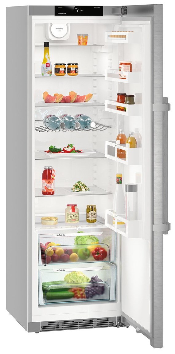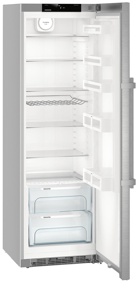 Liebherr Kef 4330 Comfort— отдельностоящий холодильник с отметкой «SmartDevice». В стандартной комплектации дверь, изготовленная из нержавеющей стали, устанавливается справа. При необходимости она может быть перенавешена на другую сторону. На покрытии SmartSteel гораздо менее заметны отпечатки пальцев, и его очень легко очистить. Полки серии GlassLine из закаленного стекла можно устанавливать на разную высоту для удобства распределения продуктов внутри камеры. Холодильная камера имеет объем 408 л. Полезный объем составляет 390 л.