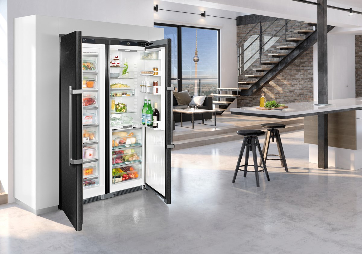 Liebherr SBSbs 8683 Premium BioFresh NoFrost — воплощение немецкой инженерной мысли и современного стиля для тех, кто ценит комфорт и технологичность в каждой детали. Элегантный дизайн HardLine с черным матовым корпусом из легированной стали и дверями из нержавеющей стали с покрытием SmartSteel гармонично вписывается в любой интерьер, подчеркивая статус владельца. Поверхность устойчива к отпечаткам пальцев, что сохраняет безупречный внешний вид даже при интенсивной эксплуатации. Доводчики SoftSystem обеспечивают мягкое закрытие, а ручки с толкателем делают открытие легким и удобным.