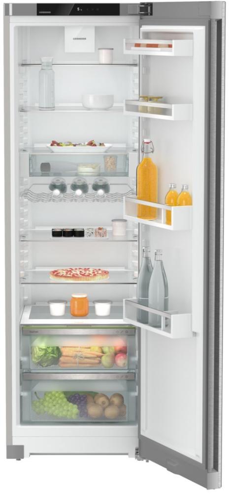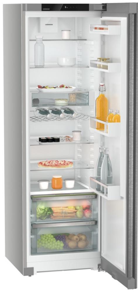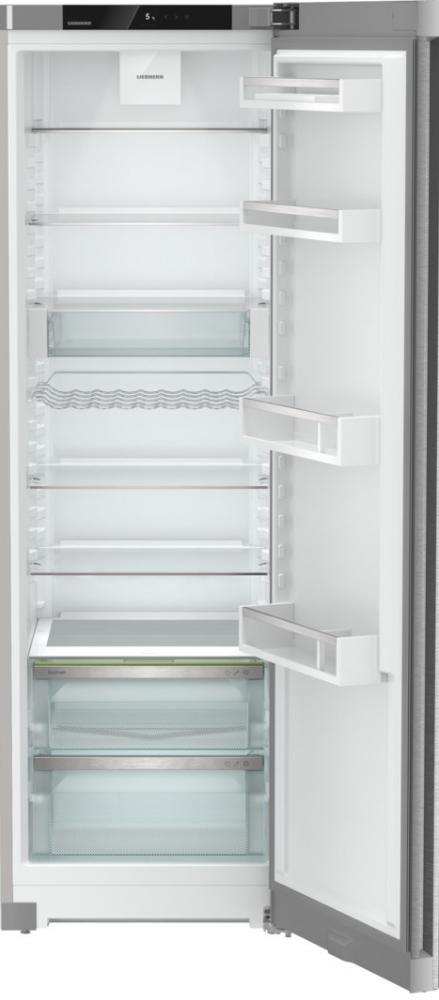 Холодильник Liebherr SRsde 5220 Plus относится к типу однокамерных. Его корпус сделан из нержавеющей стали. А чтобы внешняя часть дольше оставалась привлекательной, на дверцу нанесено покрытие SmartSteel. Оно не даёт оставлять отпечатки пальцев на блестящей поверхности. Эта модель оснащена технологией EasyOpen, которая позволяет легко и без лишней силы открыть дверцу. В верхней части располагается панель управления, представленная многофункциональным сенсорным дисплеем Touch display. Индикация открытой дверцы здесь — звуковая, а неисправности — световая. Система ChildLock не даёт изменить настройки, так как сенсоры заблокированы.