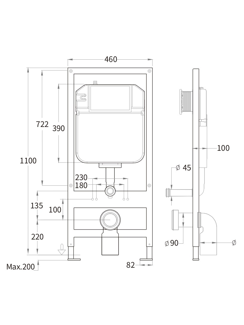- Размеры инсталляции (ШхВхГ): 460х1100х100 мм.