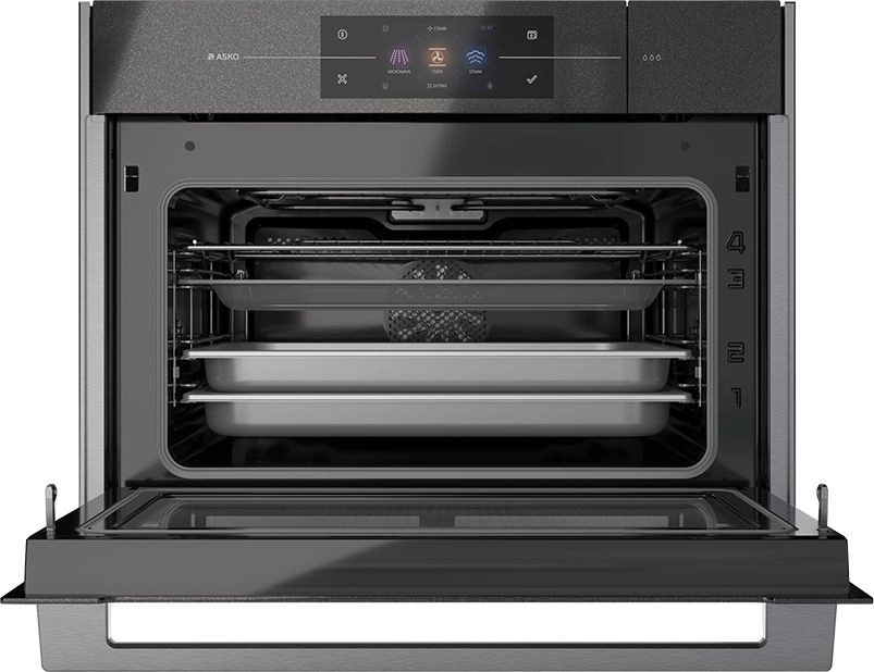 Компактный духовой шкаф Asko OCSM8478G — одно из самых многофункциональных и инновационных устройств, которое выпускает фирма. Здесь сочетаются не только различные виды жара, характерные для традиционной духовки, но также гриль, конвекция, микроволны и пар. По сути, это три устройства в одном. И вы можете воспользоваться не только каждой функцией по отдельности, но и запустить многоэтапное приготовление, содержащее несколько режимов. С таким прибором вы сможете создавать самые разнообразные блюда. А удобная система навигация облегчит настройки и сделает их интуитивно понятными.